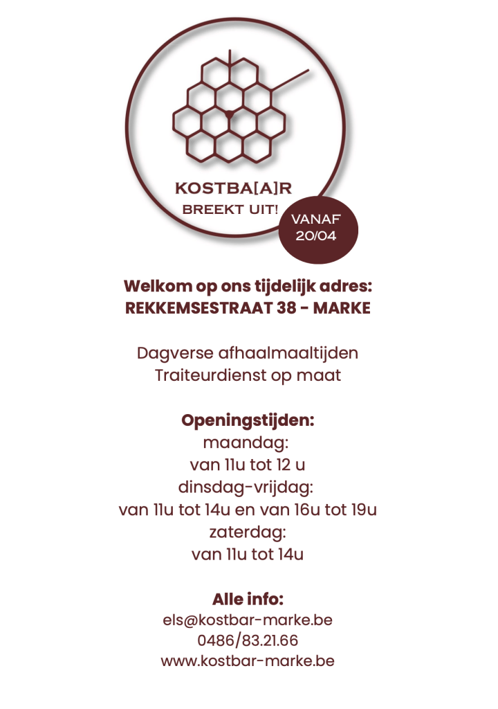 KOSTBA[A]R Welkom bij Kostba[a]r !Ontdek ons aanbod. EETWINKEL EETHUIS KLOOSTERSTRAAT 60 – 8510 MARKE 0486/83.21.66els@kostbar-marke.be