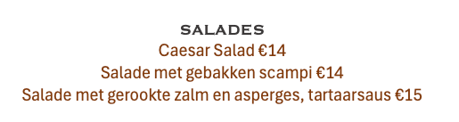 SALADES Lekker en gezond, het kan met onze vers gemaakte salades… ONS AANBOD VOOR APRIL-MEI 2026: Dit delen: Delen op X (Opent in een nieuw venster) X Share op Facebook (Opent in een nieuw venster) Facebook Vind-ik-leuk Aan het laden...