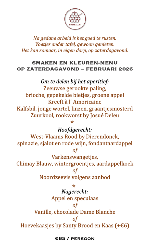ONS SMAKEN EN KLEUREN-MENU VOOR DE MAAND FEBRUARI 2026: